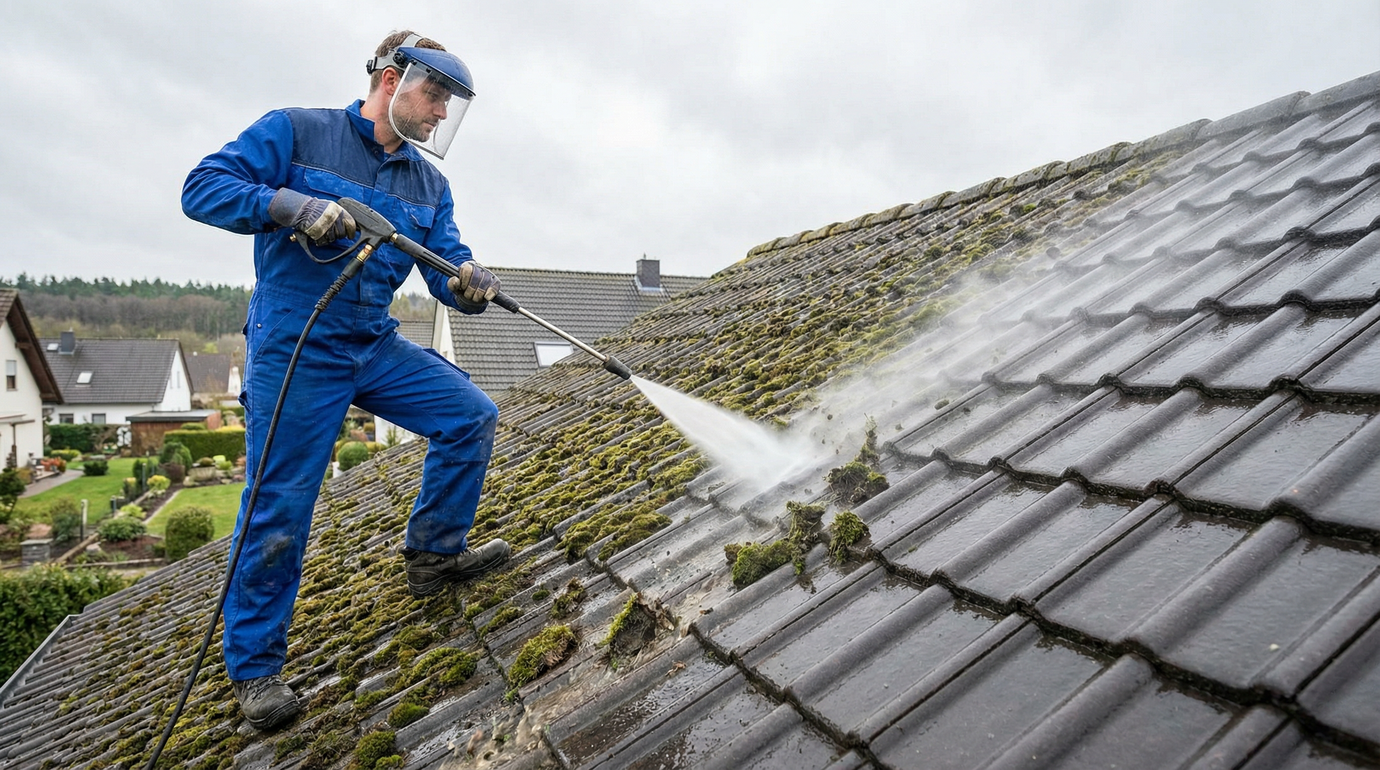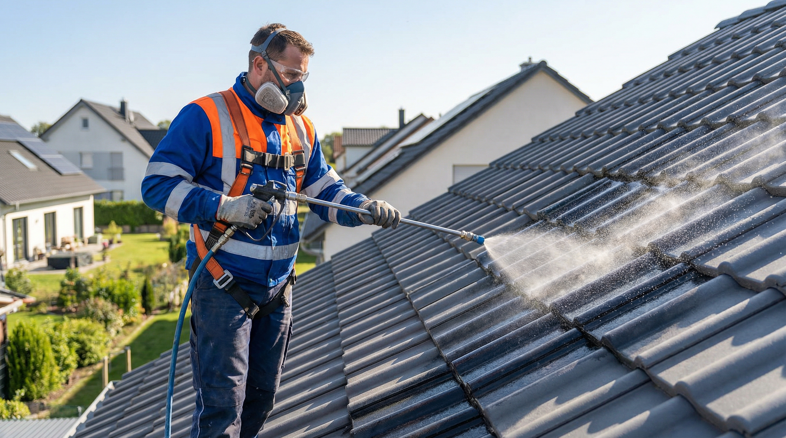 Professionelle Dachreinigung ab 999 € – die wirtschaftliche Alternative zur Neueindeckung. Mit fachgerechter Hochdruckreinigung, Beschichtung und 10 Jahren Garantie schützen wir Ihr Dach langfristig.